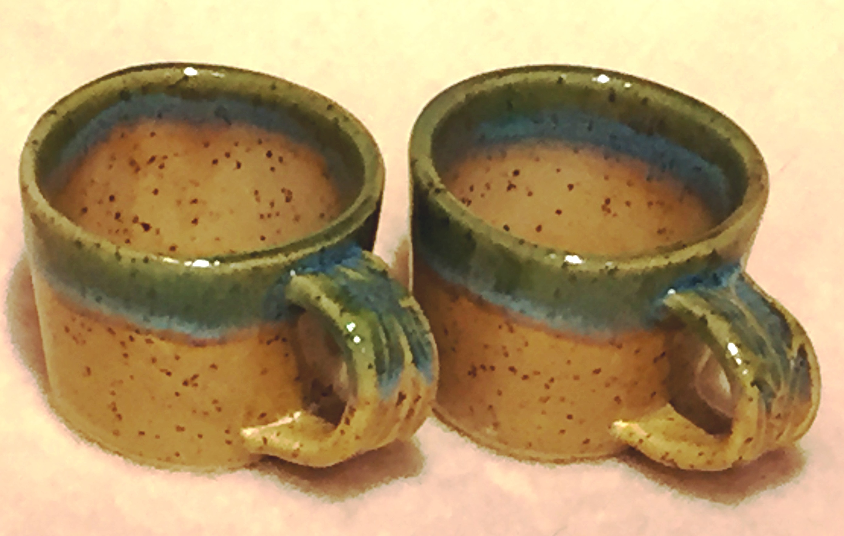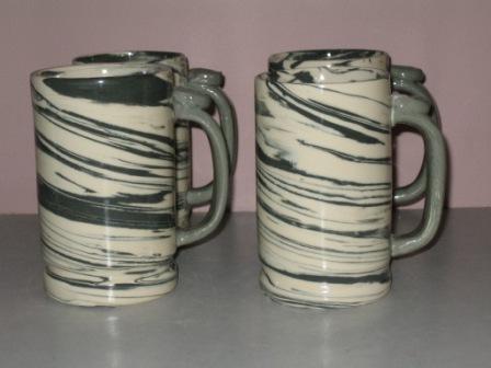Straight Tall Mug with Green & Tan Marbled Clay | Belly Mug with Blue & White Marbled Clay | |||