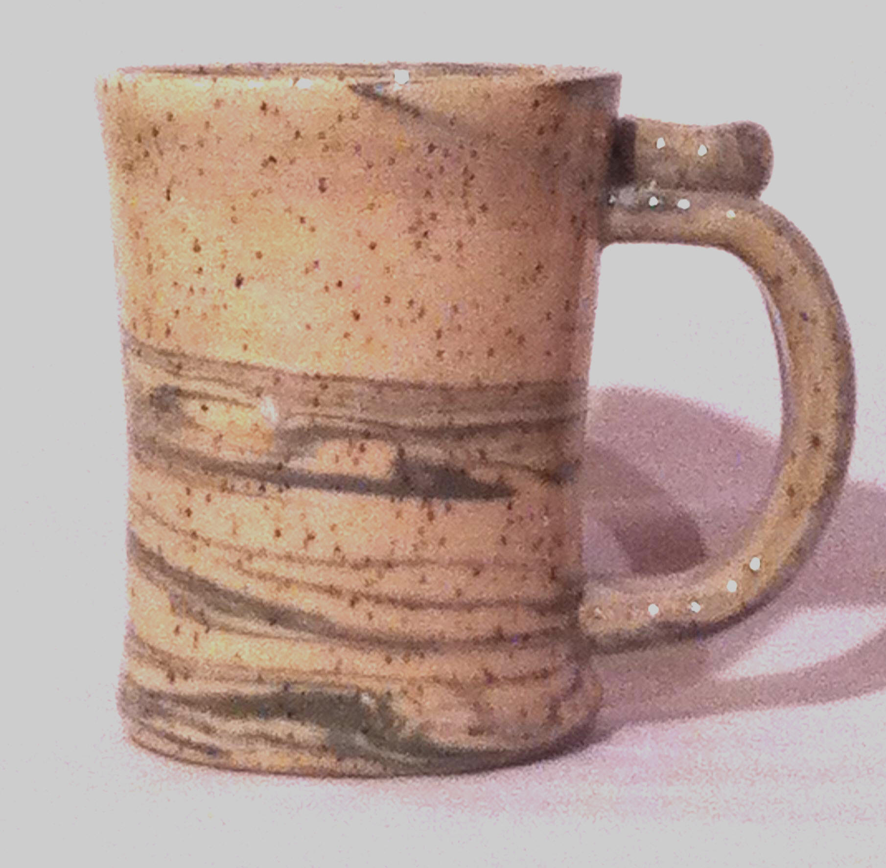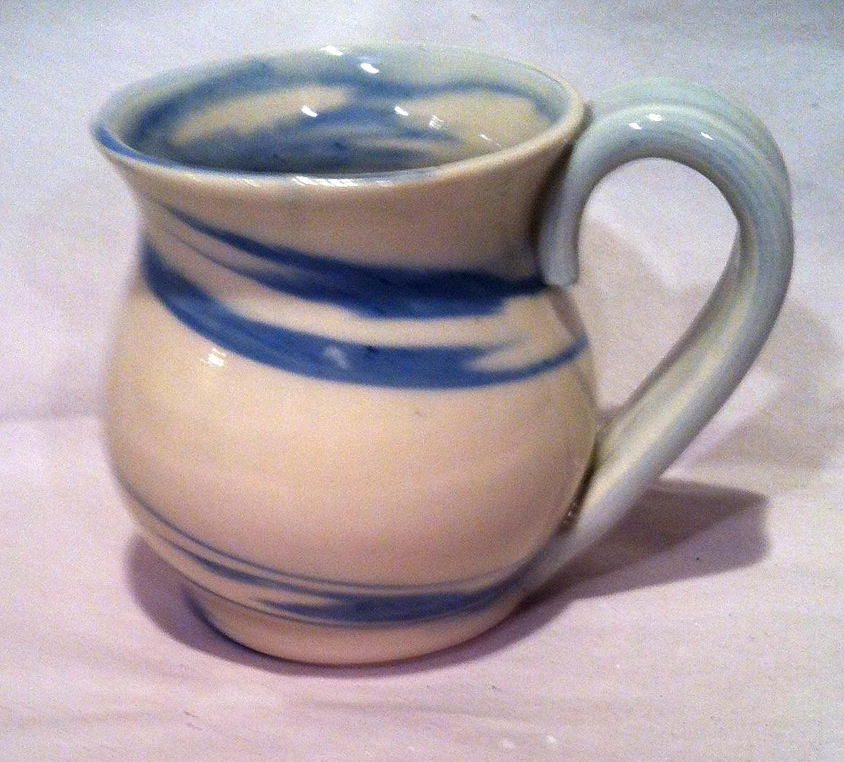 colored and white clay together. On the potters wheel, the mixed clay forms bands of colour as seen here. The item is then finished in a clear glossy glaze. With Marbled clay, every item is unique. No two will ever be exactly the same |