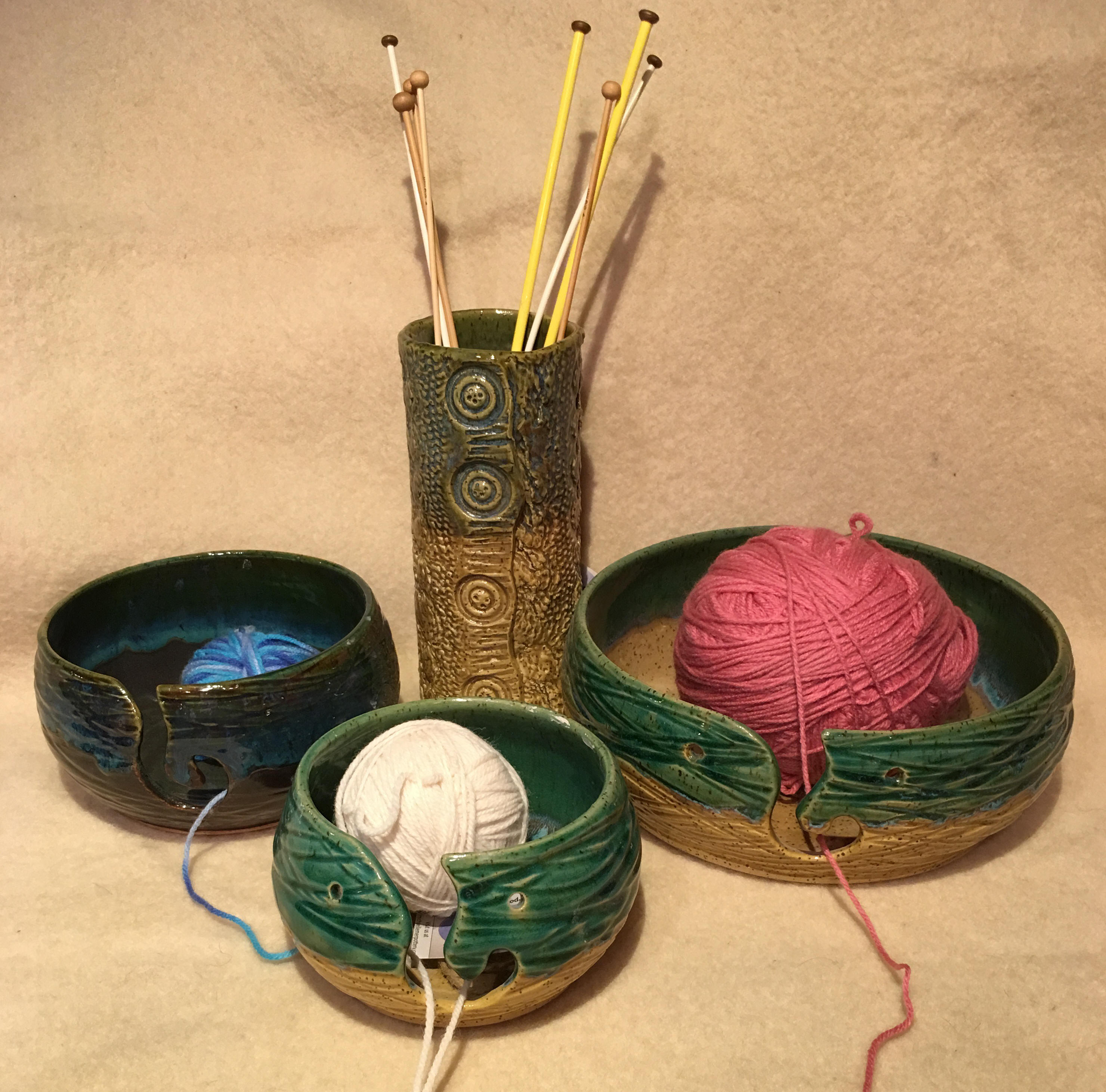 | Yarn Bowls Perfect for the knitter to keep your wool in place. A great tool, a terrific organizer, or a unique centerpiece. |