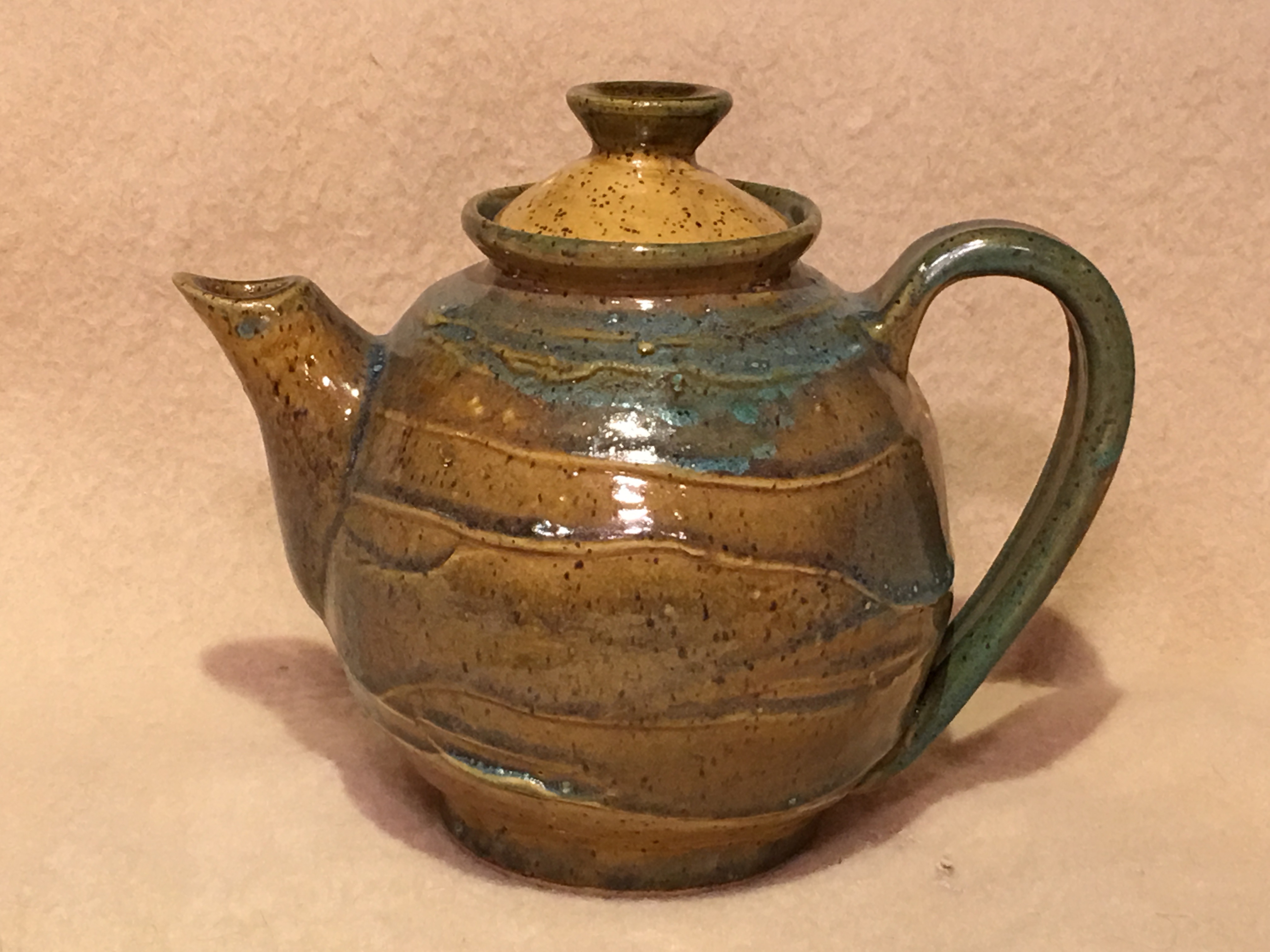 Butter dish Golden Brown with Blue/Green Drip |